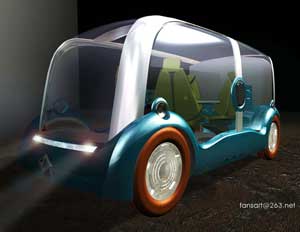 Noah是一輛具有超大內(nèi)部空間的多用途休閑旅游車,其特點(diǎn)是采用自動(dòng)駕駛系統(tǒng),完全將人從緊張單調(diào)的駕駛工作中解脫出來(lái),真正實(shí)現(xiàn)以人為本,為人服務(wù)的目的;車體外部有一系列的傳感器,可以感知一定范圍內(nèi)四面八方的物體,保證自動(dòng)駕駛的安全完成;大面積的透明材料車身可以減小車內(nèi)空間與外部空間的隔閡,拉近乘客與外部環(huán)境的距離,感受自然的細(xì)微變化,并創(chuàng)造虛實(shí)相間的建筑空間效果;該種材料的透明度可以自動(dòng)調(diào)節(jié),車頂?shù)奶齑翱梢酝耆_啟,配合空調(diào)設(shè)備能實(shí)現(xiàn)車內(nèi)溫度調(diào)節(jié);車的內(nèi)部是一個(gè)大空間,座位與地面分離,具有極大的隨意性和可塑性,能夠適應(yīng)人們多種個(gè)性化的生活需求,使作為交通工具的休旅車成為家居生活環(huán)境的延伸;車的后廂具有多種功能,可以儲(chǔ)藏,可以載物,為人們外出休閑娛樂(lè)提供更多的方便。