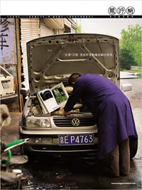 車的構(gòu)件元素與報(bào)紙的肌理簡(jiǎn)單地組合,讓人直接感知到這個(gè)媒體的屬性是有關(guān)車的。