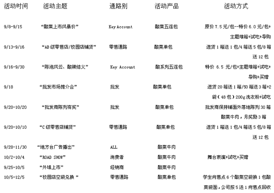 促銷品到貨慢---許多酸菜的促銷品直到9月下旬才陸續(xù)到位,之前不得不挪用其他的促銷資源。