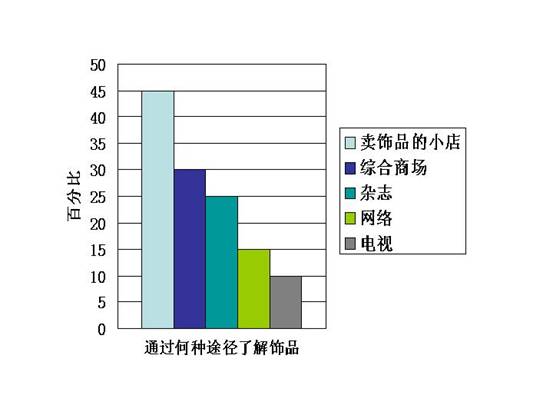 為了了解目前消費者對于飾品消費的真實感觀,以及消費者獲取信息的渠道,劉杰克營銷顧問機構與北京大學社會學系組成項目團隊在北京選取部分高校和商場使用定點攔截式訪問法對訪問對象進行了相關調(diào)查,并用SPSS統(tǒng)計軟件進行處理之后得出如下結果: