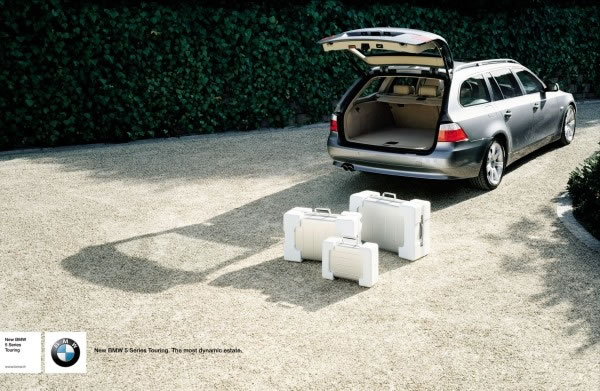 很多時候我們看廣告都是看畫面,很少看文字,除非整個畫面都是文字。之所以會出現(xiàn)這樣的情況,是因?yàn)閳D像畫面比文字更有說服力,文字只是輔助性的說明而已。在寶馬汽車的這兩張廣告中,我不僅思考這樣一個問題:到底是要有速度的寶馬汽車還是要有平穩(wěn)性能的寶馬汽車?