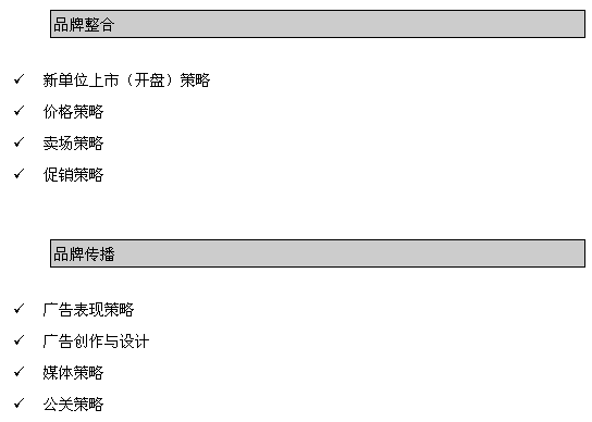 先有好的定位才有好的策略。同樣,有好的策略整合,執(zhí)行工作才有勝利的保障。我們把細(xì)分的執(zhí)行策略通過整合,用核心的定位主線聯(lián)系統(tǒng)一起來,做到真正的整合與統(tǒng)一: