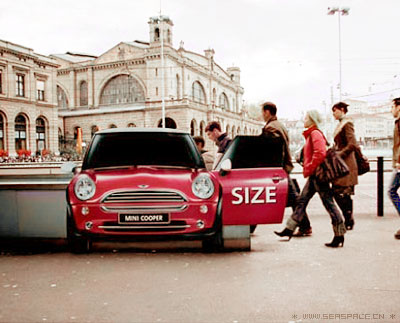 寶馬迷你汽車在地鐵的出入口都做了一個模型,從側(cè)面看的話就像是很多人走進了汽車里或很多人走出汽車。用這樣的方法來做汽車容積率的廣告非常有意思,不需要特意將人放入畫面,乘坐地鐵的人們自然成為廣告的一部分... ...