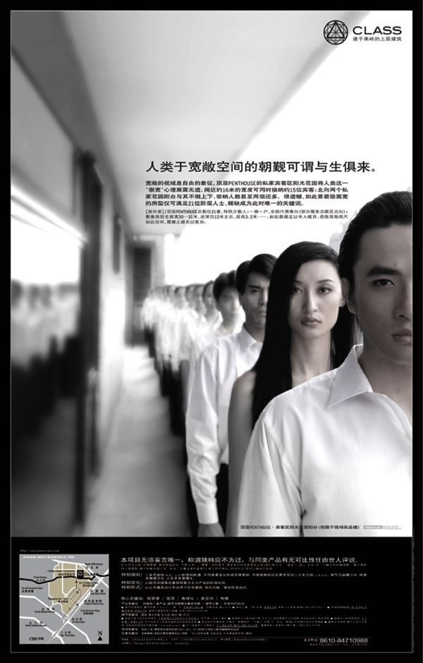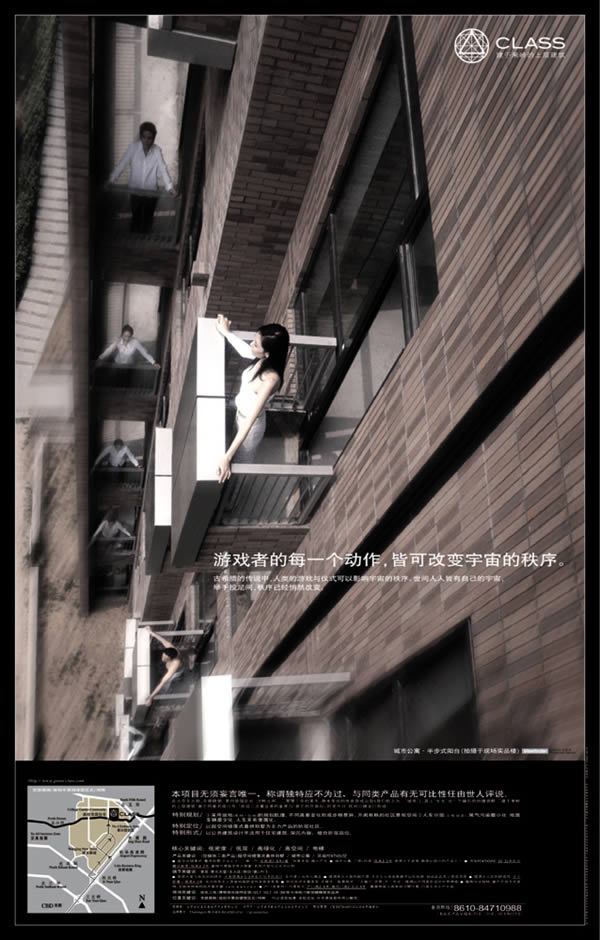 報廣文案CLASS 建于果嶺的上層建筑 1、 母體。宮殿。篇 人類的潛意識中永遠(yuǎn)保持著對元臥室(UTERUS)的回歸渴望。CLASS,讓每一個疲倦之人歸隱母體,回歸著非凡的人間宮殿。 2、游戲者的每一個動作,皆可改變宇宙的秩序。 古希臘的傳說中,人類的游戲與儀式可以影響宇宙的秩序。世間人人皆有自己的宇宙,舉手投足間,秩序已經(jīng)悄然改變。城市公寓.半步式陽臺 3、絕非臆想。 此為疊拼別墅(主力產(chǎn)品)高達(dá)5米的二層空間。承蒙室內(nèi)設(shè)計師啟發(fā),“2層變3層”的創(chuàng)意空間由此產(chǎn)生,業(yè)主因此獲得大利益。絕非憑空想象,蒞臨現(xiàn)場,所有懸揣都將得以解悟。 超空間錯落式疊拼別墅.“2變3”創(chuàng)意夾層空間 4、形式是建筑的靈魂。 形式是建筑的靈魂,自古以來就是如此,F(xiàn)代的技術(shù)可以在相同的建筑外表下安排幾乎所有的功能,因而——形式可以獨立于功能存在。建筑的靈魂因形式的深邃而得以永恒。永恒是建筑永存的理由,永恒的建筑即使不能永存也不會走入垃圾的命運。 5、意識決定形態(tài)。 世界發(fā)展依賴創(chuàng)新意識,地產(chǎn)界依賴,我們也依賴。 依賴一個強大支點,支起新的架構(gòu),顛覆已知經(jīng)驗,開啟教育功能。 創(chuàng)新意識改變舊秩序。創(chuàng)新意識決定新形態(tài)。 一個歷久彌新的赭石色建筑群和階層社區(qū) 我們不愿妄稱“豪宅”,我們希望我們的產(chǎn)品是件歷久彌新的“古董”。這源于我們對住宅人文內(nèi)涵的執(zhí)著追求!半A層社區(qū)”的構(gòu)思與定位,源自我們對(CLASS)、即現(xiàn)代社會上層結(jié)構(gòu)(人群)及其生活格調(diào)的理解與認(rèn)同。對于中國剛剛發(fā)展了十幾年的房地產(chǎn)市場,能夠為居者提供一個歷久彌新的建筑產(chǎn)品,一個良好的人居環(huán)境;擁有高品位的業(yè)主,良好的公眾口碑,亦足矣。 “財富是數(shù)字的游戲,建筑是時間的游戲。”我們不曾奢求上層建筑可以流芳百世,唯求它予居住者生活的安寧與精神的安寧,如此“安寧”二字,散發(fā)著古董般的人文光澤與人性魅力,于21世紀(jì)的今天,業(yè)已令人久久回味。 特別規(guī)劃:A / 采用坡地(坡地+臺地)的規(guī)劃肌理。不同高差變化形成步移景異、開閡有秩的社區(qū)景觀空間。B / 人車分層(立體分流),尾氣污染最小化,地面車輛最少化,人車關(guān)系隸屬化。特別定位:以超空間錯落式疊拼別墅為主力產(chǎn)品的階層社區(qū)。特別形式:以公共建筑設(shè)計手法用于住宅建筑,深沉內(nèi)斂,暗合階層品位 核心關(guān)鍵詞:低密度/低層/高綠化/高空間/電梯細(xì)節(jié)關(guān)鍵詞:首層.單元大堂/主人區(qū)/陽臺/窗/戶現(xiàn)場關(guān)鍵詞:位置關(guān)鍵詞: 本項目無須妄言唯一,稱謂獨特應(yīng)為不過,與同類產(chǎn)品有無可比性任由世人評說。