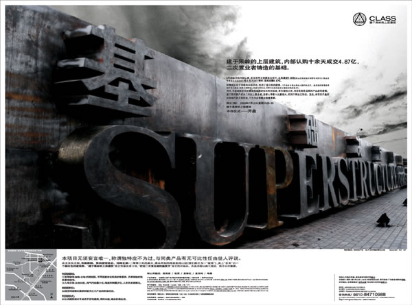 <基礎(chǔ)·結(jié)語> 一次完美主義者與偏執(zhí)狂之間的對話。一次理性主義與浪漫主義之間的交媾。一次人間TVSHTAR與當(dāng)代苦行僧之間的邂逅。一次新利己主義者之間的高聲對話。 以關(guān)于基礎(chǔ)決定上層建筑的現(xiàn)代哲學(xué)思辨。 上帝 上界 上諭 上層 上帝。不止是偶像,是存在于世間的愛。上界。對超越生死輪回界限之人生觀的世俗理解. 上諭。自然萬物的規(guī)律,違背注意規(guī)律理應(yīng)受到懲戒。上層。受人尊敬的苦行僧,以救贖人民的疾苦為己任。 我們希望內(nèi)心善良、生活美好。我們選擇筑造居所。我們追求真、善、美。 CLASS2 講上層 “上層”THE TOP LEVEL 上:位置在高處;等級和品質(zhì)高的;秩序和時間在前面;由低處到高處;舊時指皇帝上諭;中國民族音階的一級,相當(dāng)于簡譜的“1”。上層:上面的一層或者幾層<多指機構(gòu)或組織級階層>;如上層領(lǐng)導(dǎo)、上層人物。這里特指-上層“階級”,即我們的客戶。與階層的暗河。我們的客戶是社會穩(wěn)定與發(fā)展的中流砥柱,是社會經(jīng)濟體系中的“上層建筑”。與產(chǎn)品的暗河。 “上層”空間。這里特質(zhì)社區(qū)內(nèi)占55%的超空間錯落式疊拼別墅中的獨特的“2變3”層。 “上層建筑”THE SUPERSTRUCTURE 指建立在經(jīng)濟基礎(chǔ)上的政治、法律、宗教、藝術(shù)、哲學(xué)等觀點,以及適合這些觀點的政治、法律等制度。經(jīng)濟基礎(chǔ)決定上層建筑,上層建筑反映經(jīng)濟基礎(chǔ)。在一定經(jīng)濟基礎(chǔ)<下層建筑>之上的建筑。指社會政治、法律、警察、國家等意識形態(tài),以及藝術(shù)、哲學(xué)、宗教、教育等高級的意識形態(tài)上層建筑有“超空間錯落式疊拼別墅、城市公寓、頂層PENTHOUSE”三類產(chǎn)品?偢7.8m的“超空間錯落疊拼別墅”為主力產(chǎn)品;3.2m高的“城市公寓”為輔,以及限量21套的“頂層PENTHOUSE”。