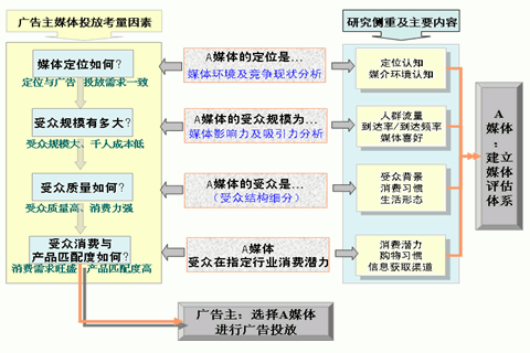 通常,廣告主在進(jìn)行媒介投放的時(shí)候,會(huì)從以下角度(如圖一所示),通過(guò)四個(gè)步驟對(duì)備選媒介進(jìn)行考量和篩選,最終選擇邊際效益最大的媒介進(jìn)行廣告投放。