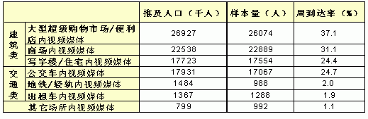 表二:各細(xì)分戶外視頻媒體周到達(dá)人群規(guī)模