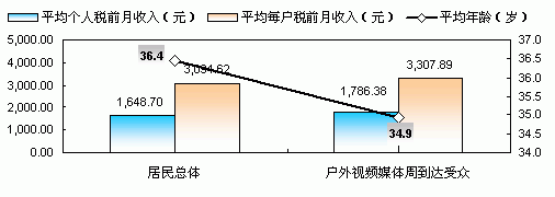 表三:各細(xì)分戶外視頻媒體周到達(dá)人群收入、年齡狀況