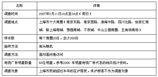 “上海市民心目中的中國電視廣告明星調(diào)查”是上海會眾文化傳播有限公司和上海大學傳媒研究中心共同策劃,在上海地區(qū)展開的調(diào)查研究項目。