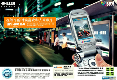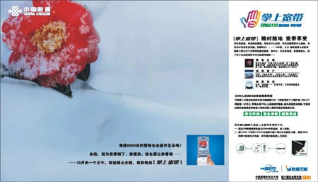 鎖定傳播語(yǔ):從結(jié)繩記事到刀刻甲骨,從一騎紅塵到烽火連天,從飛鴿傳書(shū)到電報(bào)電話,從GSM移動(dòng)通信到前瞻的準(zhǔn)3G科技CDMA1X;溝通的歷史就是人類從遠(yuǎn)古走向現(xiàn)代的歷史。武俠小說(shuō)中關(guān)于千里傳音的傳說(shuō)寄托著人們對(duì)于暢意溝通的夢(mèng)想。而如今,一束電波寄相思已成為人們現(xiàn)實(shí)生活中觸手可及的溝通方式……溝通無(wú)止境,聯(lián)通不敢妄言完美……但我們知道,人們期待著中國(guó)聯(lián)通創(chuàng)造一個(gè)真正嶄新的365溝通天地。新時(shí)空CDMA,明日科技,今日生活。