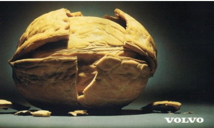 VOLVO(富豪)素以“安全”為廣告訴求,數十年不變。這也成了品牌耳熟能詳的個性。VOLVO的廣告如何形象、生動地表達“安全”?1996年,它以“安全別針”的單純創(chuàng)意獲戛納廣告節(jié)平面廣告全場大獎。廣告在空大留白版面中用大型安全別針曲成汽車的外形,大標題是“你可信賴的汽車”。1997年,又見VOLVO戛納獲獎的力作:一位面露微笑,神情安然自怡的嬰兒躺在母親碩大的雙乳間!鞍踩小庇腿欢