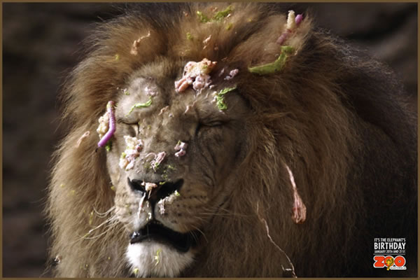 畫面上的獅子跟河馬怎么了?起初我以為是關(guān)于在動物園亂扔垃圾食物公益廣告,結(jié)果發(fā)現(xiàn)話題沒那么沉重。原來危地馬拉動物園(Guatemala Zoo)的大象生日了,它們一定在Party上被蛋糕偷襲了。。幸福大家庭。。^_^