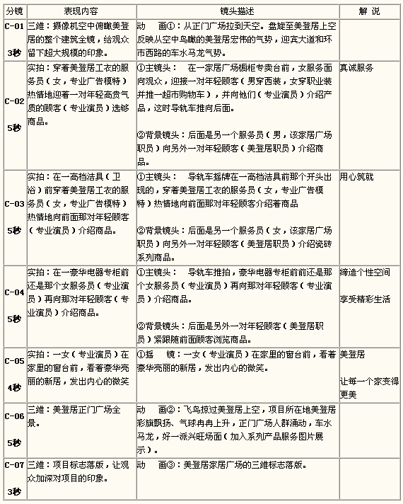 (5)本電視廣告宣導(dǎo)務(wù)必能夠提高美登居企業(yè)形象與入住商家銷售額;