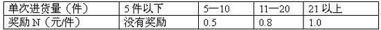 如某終端12月份進貨8件,次年的1—3月份分別進貨10件、15件和15件,則其在1月份可以得到的獎勵為:8*0.5=4元;