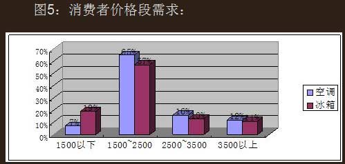 上半年空調(diào)的件均價(jià)為3180元,較去年同期上升了9%,冰箱的件均價(jià)為2465元,較去年同期增長(zhǎng)6%。1500~2500元價(jià)位段的冰箱、空調(diào)均居主流地位,消費(fèi)者在此價(jià)位段的需求分別為57%和65%;