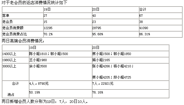 基本上達(dá)到會(huì)前所定的每日返店老會(huì)員20人以上的目標(biāo)。