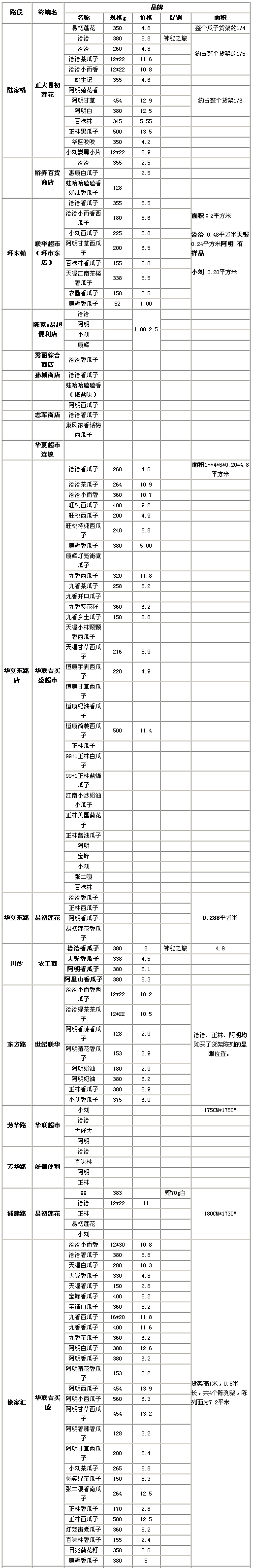 上海瓜子市場終端調(diào)研情況一覽表