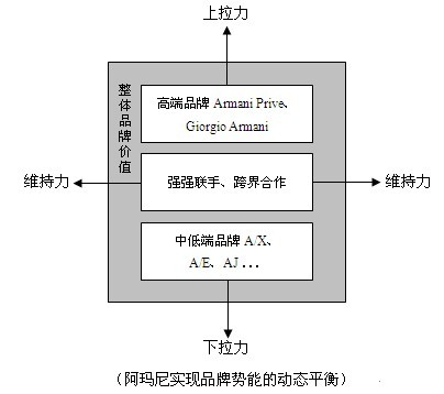 塔,才能使品牌豐滿有力。在阿瑪尼品牌系列中,從二三十萬人民幣一套的高級訂制時裝Armani Prive系列,到一套西裝三萬人民幣左右的Giorgio Armani,再到數(shù)百元的阿瑪尼低價品牌系列,產(chǎn)品定位由高到低排列了十幾個定位不同的副品牌。這些品牌有各自明確清晰的品牌定位,以便顧客區(qū)分。并采取了不同的渠道種類以防品牌間相互沖突。另一方面,品牌間又保持著某種聯(lián)系。無論是Giorgio Armani的高端奢侈、Armani Collezini的端莊淡雅、 A/X的年輕時尚,還是Armani Jeans的大眾休閑,它們又同時奇妙地保有了“阿瑪尼品牌”的特有設(shè)計(jì)精髓。阿瑪尼除進(jìn)行品牌延伸之外,經(jīng)營品類也進(jìn)行了的廣泛延伸,從各種服飾及配套產(chǎn)品一直延伸到各種生活用品,直至進(jìn)入食品、汽車、酒店業(yè)。阿瑪尼現(xiàn)在已經(jīng)從一個單純的時裝品牌成功地轉(zhuǎn)型為一個完整的時尚奢侈生活方式品牌。只要消費(fèi)者喜歡,他們一天24小時都能接觸到阿瑪尼的產(chǎn)品和服務(wù)。