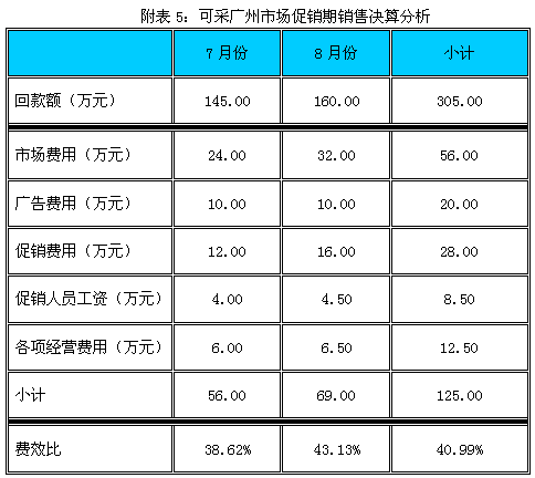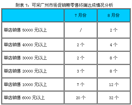 縱然有很多地方還不能完全盡如人意,但是可采發(fā)起的這場創(chuàng)新促銷攻堅(jiān)戰(zhàn)還是以全線告捷而劃上了句號。自此之后,可采在廣州市場的月度銷售量就再也沒有低過100萬元的銷售水平,所以,也有人把這次創(chuàng)新促銷活動(dòng)稱之為新、舊可采時(shí)代的分水嶺。
