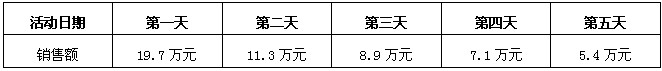 三聯(lián)家紡海門專賣店位于海門市區(qū),由三聯(lián)家紡老廠區(qū)沿街房改造而成,其所在的嘉陵江路是一條非商業(yè)街,基本沒有自然客流量,日常銷量主要來源于老客戶的回頭購買。在今年國慶期間舉行了一次促銷活動,活動期間銷售額總計為83.7萬元。其中活動前五天銷量為(第一天銷售額含活動前預訂款7.5萬元):