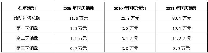 通過對海門店歷年以來國慶促銷數(shù)據(jù)的比較,我們不難發(fā)現(xiàn):2011年比2009年增長近8倍,比2010年增長近4倍?梢赃@么說,三聯(lián)家紡海門店今年國慶期間的促銷活動是比較成功的。海門店活動的成功到底是偶然還是必然?筆者有幸全程參與了此次促銷活動,認為海門店活動的成功是必然的結(jié)果。那么,在產(chǎn)品價格較往年同期活動沒有任何優(yōu)勢的前提下,海門店活動的成功要素到底有哪些?