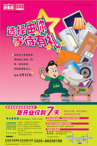 從2004年2月5日開(kāi)始,友誼廣告接受了好美家南京店開(kāi)業(yè)的全案工作,要求在40天內(nèi)完成好美家南京店開(kāi)業(yè)的整體策劃及執(zhí)行,并通過(guò)策劃打開(kāi)市場(chǎng)局面,促進(jìn)賣(mài)場(chǎng)銷(xiāo)售,確立好美家在南京建材市場(chǎng)的品牌地位。
