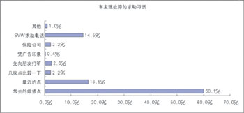 1.緊急情況下,車主撥打SVW求救電話,在調(diào)查中位居第三位(見圖1)。