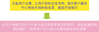 1.戶服務(wù)中心熱線95000789在消費(fèi)者中的知名度不高;用戶對(duì)號(hào)碼的記憶不深,撥打主動(dòng)性低。