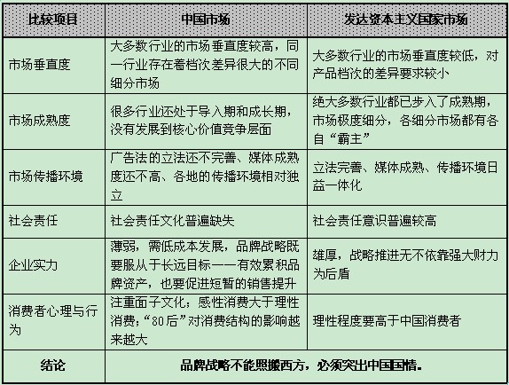 本土與發(fā)達(dá)國(guó)家市場(chǎng)環(huán)境差異對(duì)品牌戰(zhàn)略影響主要有以下六個(gè)方面: