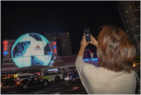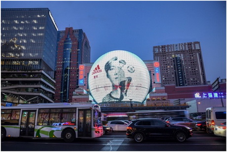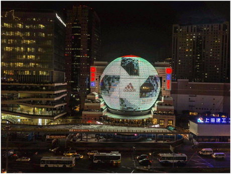為了創(chuàng)造震撼的視覺效果,此次阿迪達斯將上海最具標志性的美羅城球形建筑打造成一顆超巨型世界杯官方比賽用球。巨大LED球型大屏循環(huán)播放23位創(chuàng)造者的人像,全天候向世界輻射創(chuàng)造能量,每一位路過的行人都感受到世界杯的激情和運動的純粹。對于球迷來說,阿迪達斯的這場營銷活動既創(chuàng)造了一個可以隨時隨地和球星互動的機會,還提供了身臨其境、虛實相生的游戲體驗。通過AR新科技,為忙碌的生活帶來輕松的調劑,用最前沿、最富創(chuàng)造力的方式與世界杯一起狂歡。