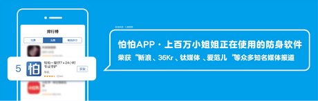 不久前鬧得沸沸揚(yáng)揚(yáng)的”空間深夜打滴滴車遇害事件“中,很多網(wǎng)民大力推薦使用怕怕APP防身,甚至是像騰訊新聞、新浪網(wǎng)等知名門戶網(wǎng)站,知名主持人韓喬生,以及”差評(píng)“、”躺倒鴨“等500強(qiáng)科技自媒體大號(hào)都在寫專題圖文推薦怕怕,可以說(shuō)差不多每一篇防身攻略里邊你都能看見(jiàn)怕怕APP的推薦。國(guó)內(nèi)防身市場(chǎng)相對(duì)空白,而怕怕APP作為國(guó)內(nèi)首個(gè)人身防護(hù)軟件,成為了唯一的也是最好的互聯(lián)網(wǎng)防身辦法。從ASO100的數(shù)據(jù)來(lái)看,怕怕APP長(zhǎng)期穩(wěn)居蘋果應(yīng)用商店免費(fèi)排行榜20名左右,在5月中旬一度飆升到總榜第5名,怕怕APP運(yùn)營(yíng)負(fù)責(zé)人回應(yīng)當(dāng)前用戶總量已經(jīng)超過(guò)1000W。